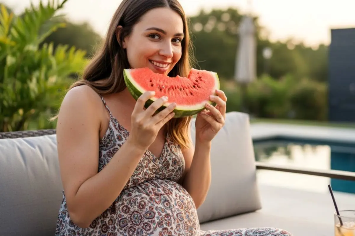 The high water content in watermelon for pregnancy keeps you hydrated, reducing swelling in your feet or hands. Hydration also helps with constipation, which bothers up to 38% of pregnant women.