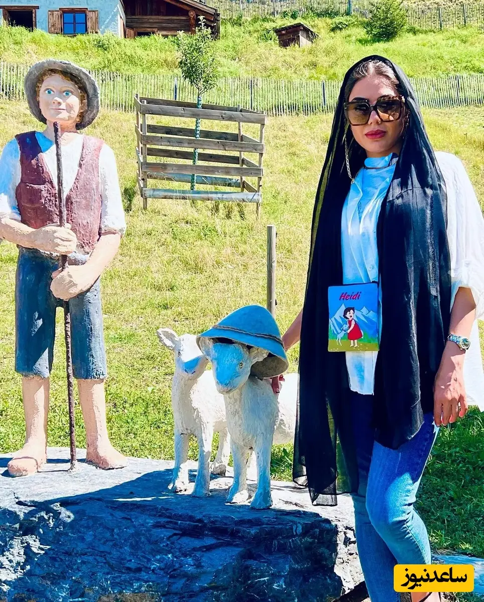 آزاده زارعی در کنار بزهای معروف پیتر و فضای شاعرانه و زیبای آلپ عکس‌هایی به یادگار گرفته است. این تصاویر، لحظات خوش و پر از آرامشی را نشان می‌دهند که هر بیننده‌ای را به خود جذب می‌کند.
