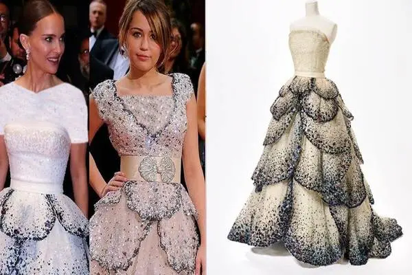 نی نی بان: پیراهن افسانه‌ای «Junon» از برند دیور، با طراحی خیره‌کننده دامن چندلایه و جزئیات گلبرگی‌شکل، یکی از نمادهای جاودان تاریخ مد است که یادآور ظرافت شاعرانه‌ی کریستین دیور در دهه ۱۹۵۰ می‌باشد.