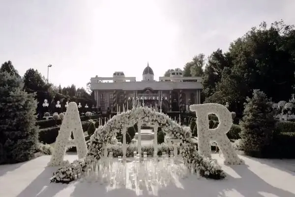 تصویر زیر نمایشگر کارت دعوت عروسی محمدرضا گلزار و همسرش آیسان آقاخانی است که با طراحی و نگارش به زبان انگلیسی صورت گرفته است: