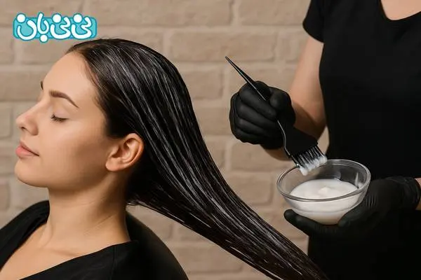 - تقسیمبندی موها: موها به چند بخش تقسیم میشوند تا مواد بهصورت یکنواخت اعمال شوند.