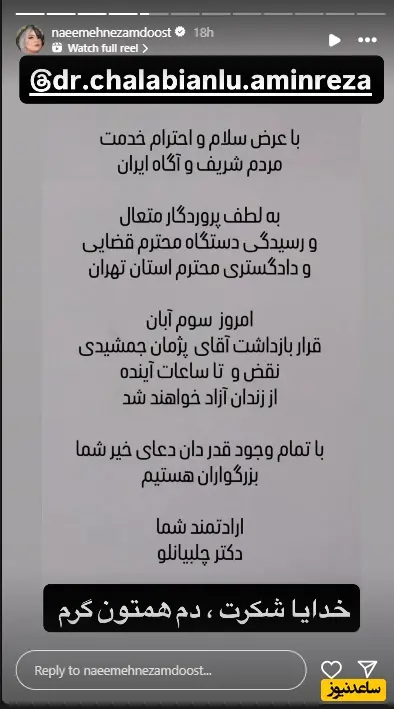 تصاویری که تماشا کردید مربوط به استوری بازیگران در خصوص آزادی پژمان جمشیدی می باشد.